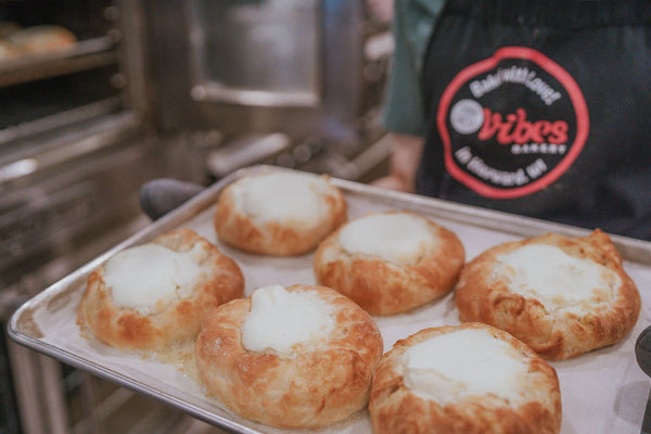 Vibes Bakery was conceived in the spring of 2020 in Hayward, Wisconsin, and life has been sweeter ever since. We're obsessed with our artisan baked goods—from flaky croissants to sweet breads, cookies and buttery scones, to decadent cupcakes and pies.